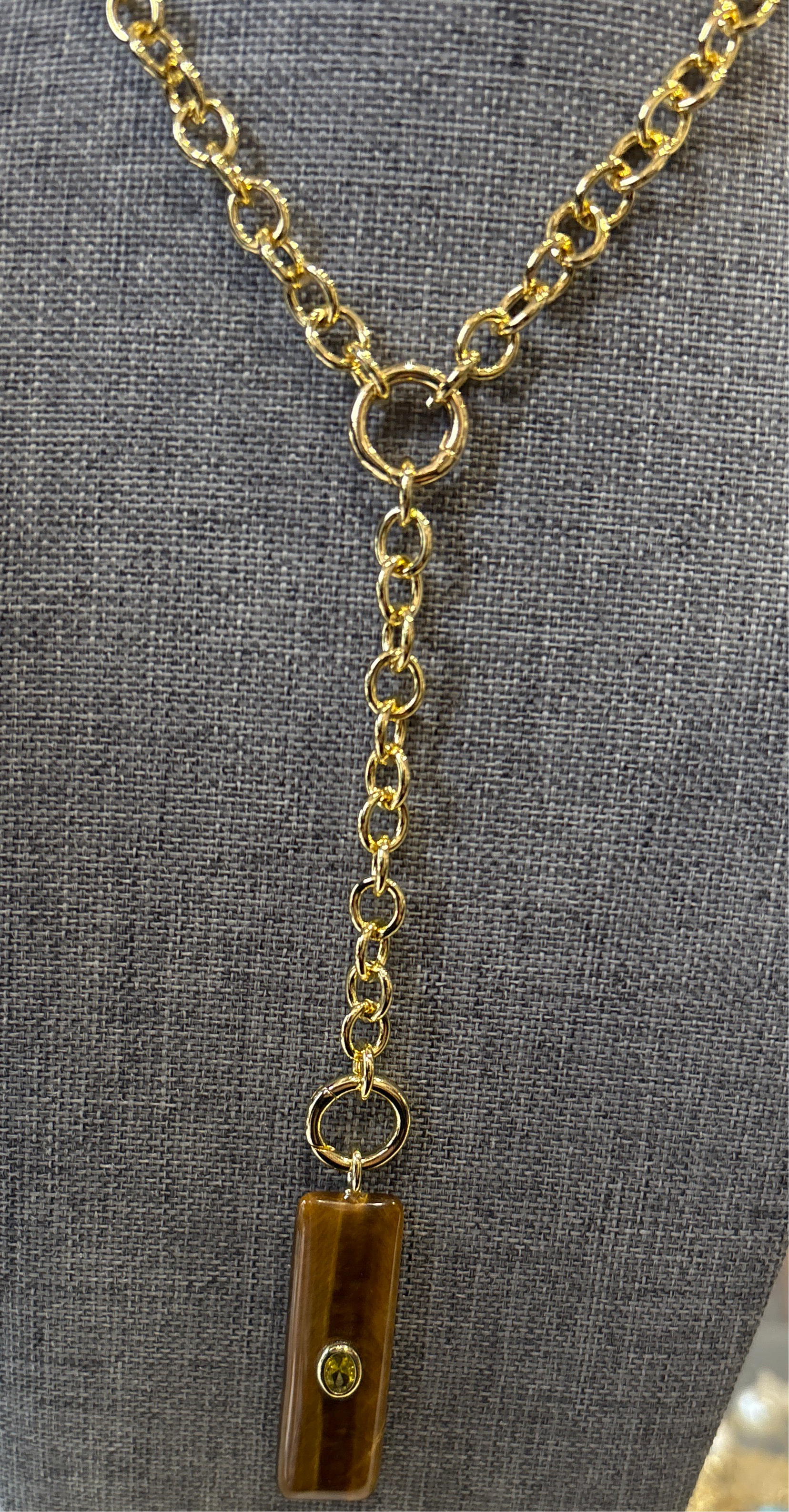 Brown agate rectangular charm on 24" chain. Charm is 2". Clasp on necklace . Can use chain for other charms.