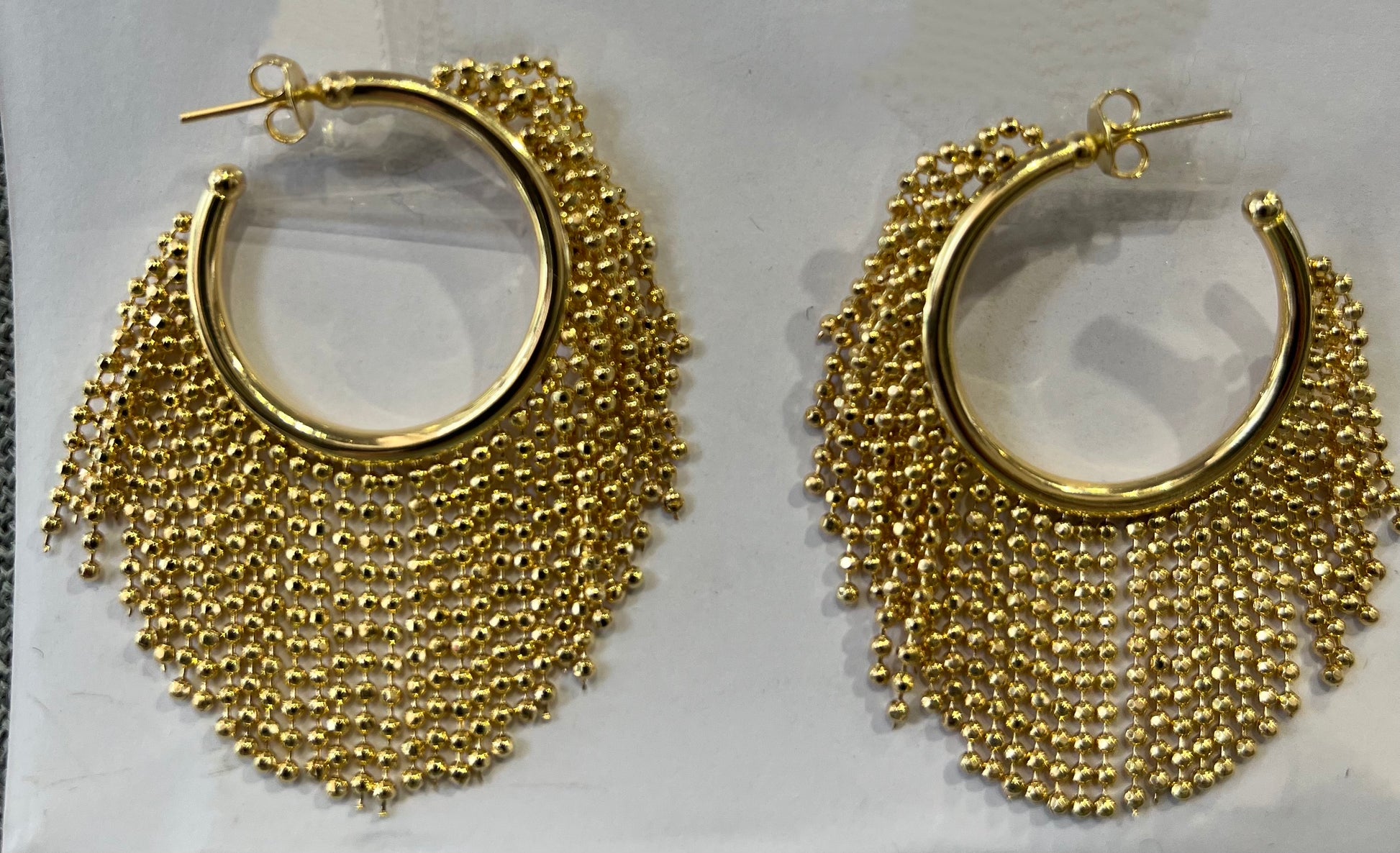 Gold-filled fringe hoops. Hoop measured 1" with fringe an additional 1". Post back.