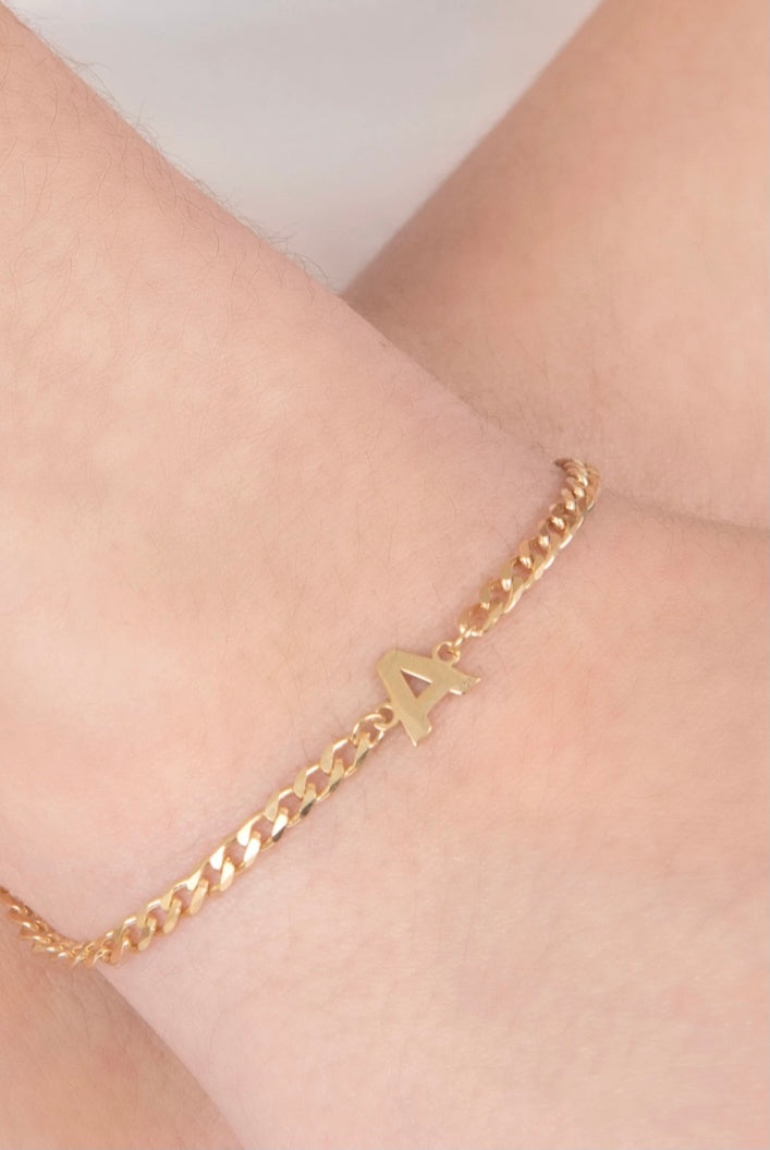 Sterling silver gold-plated initial bracelet. Available in 2 sizes: