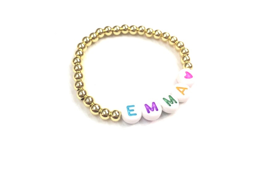 5” beaded personalized bracelet. 4mm beads. Email to order.